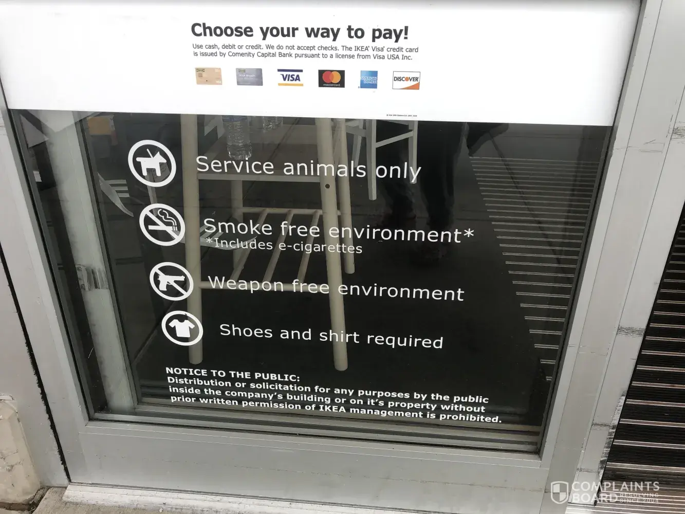 If I do not get an immediate response I will call my attorney as I have papers on my dog which they did not even ask to see she also has a collar on, that is nice and bright that says emotional support! I will be taking this up with the authorities and further if this is not resolved immediately! You do not have a sign anywhere that says an emotional support dog Hass to be on a leash and I have taken pictures! I have also seen previously, many dogs in the store that were not on leashes and I am hoping that IKEA was not singling me out because I'm an African-American female!