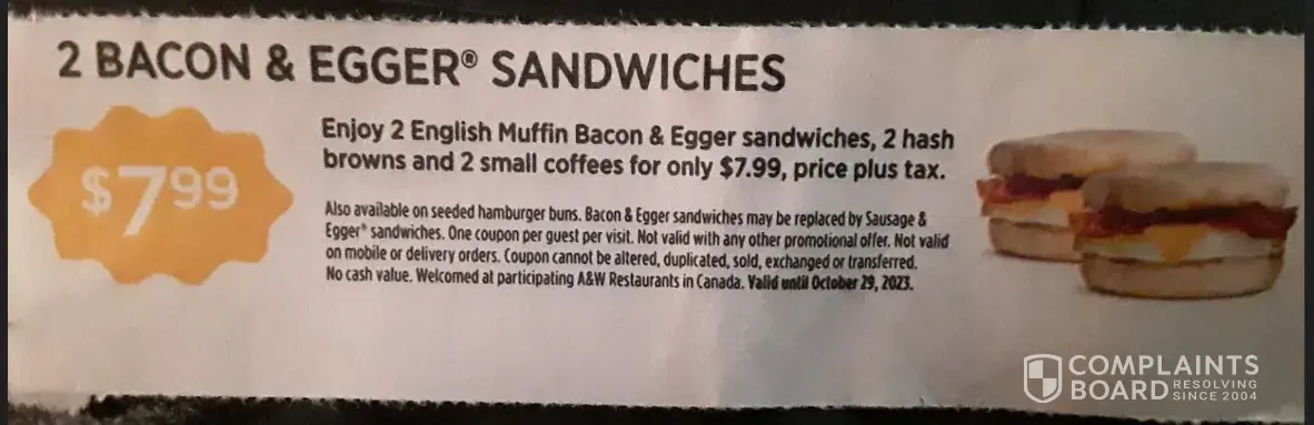 A&W Restaurants reviews and complaints 1