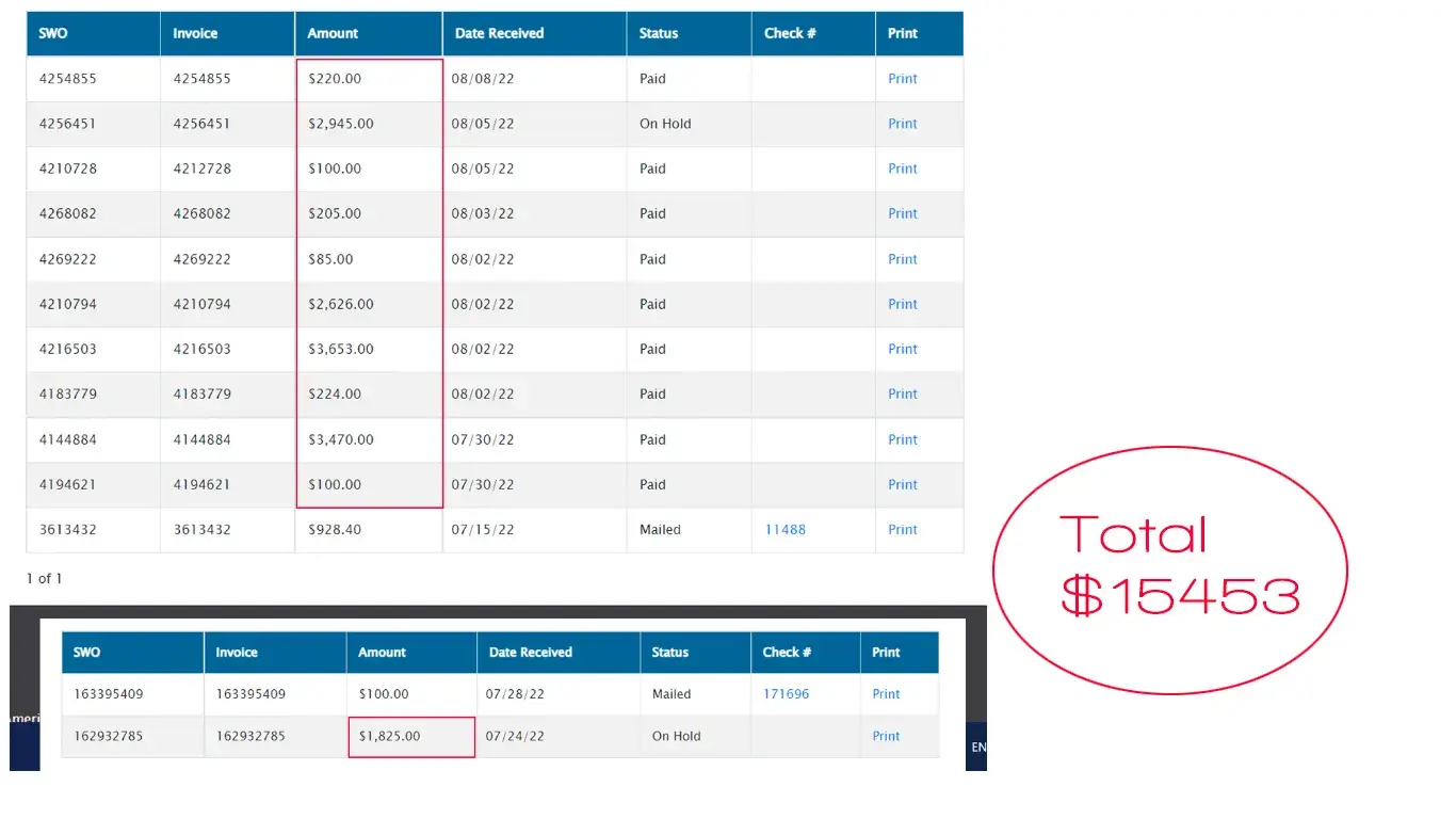 On august they stopped sending us work orders, so when we called we got told that our account has been frozen for 6 months due to low stats from us, we got told that the money they owe ($15,453) us will be released on February 2023, when we contacted them on February we got told that we are in line to get payment.