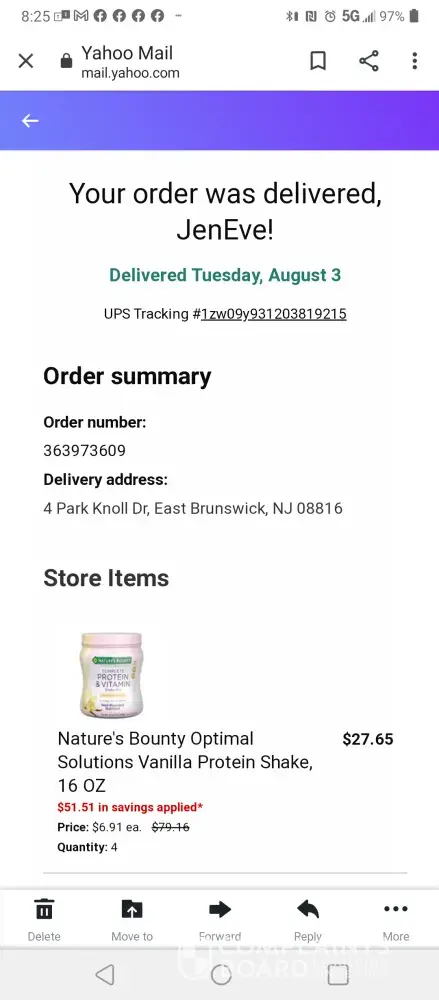 Desired outcome: Receipt of the balance of my order by mail or a voucher two receive the two items at my local CVS