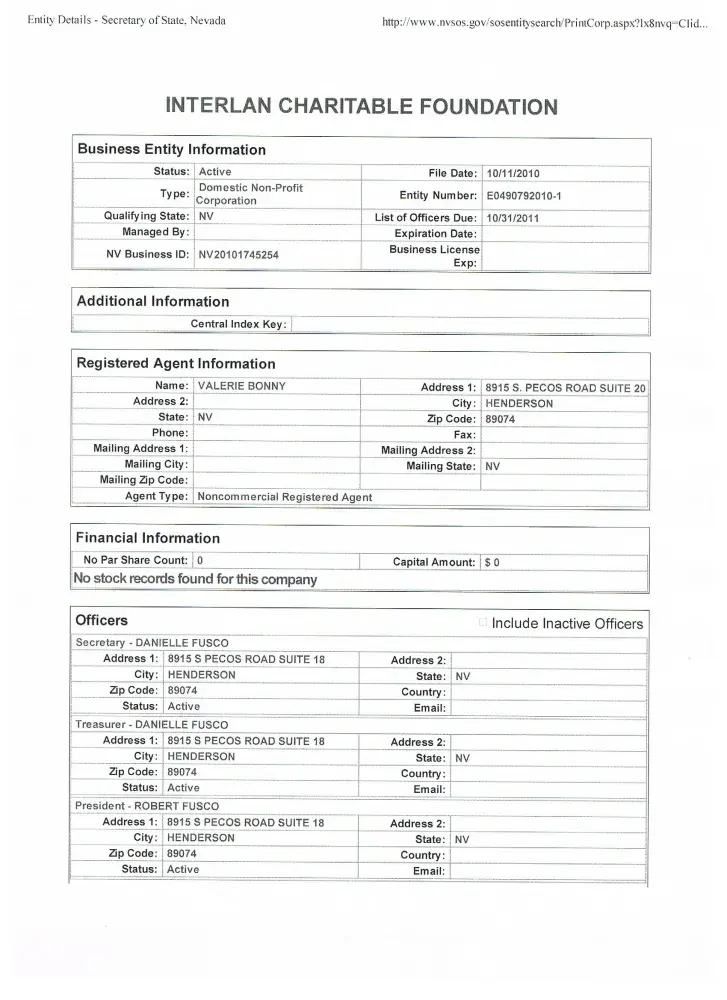 Interlan Charitable Foundation owned by Scammers Robert Fusco and Danielle Fusco, daughter of Robert Fusco
