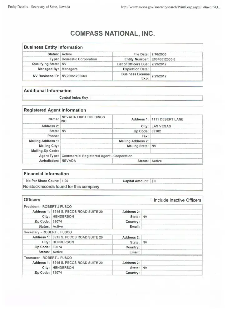 Compass National owned by Scammer Robert Fusco
