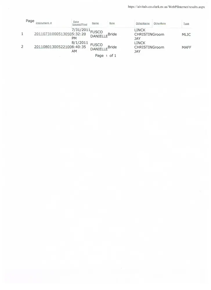 I have posted the public record marriage information, so you can see the name went from Danielle Fusco to Danielle Link