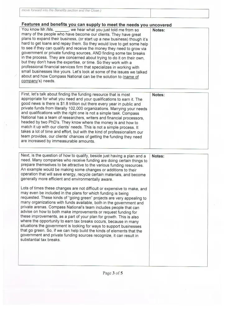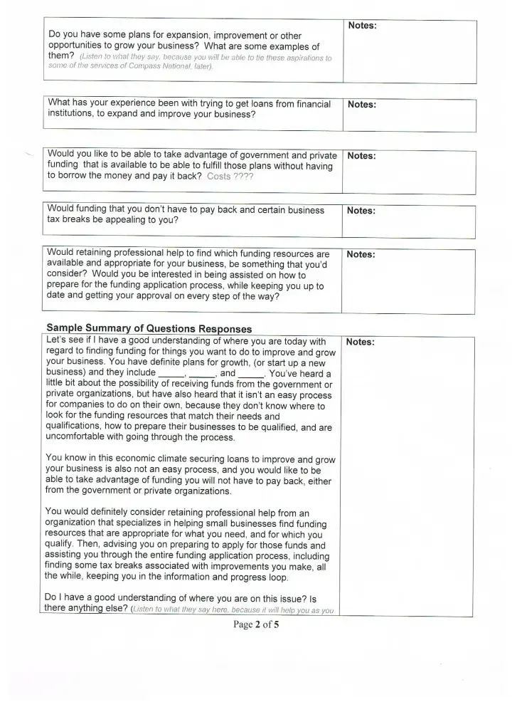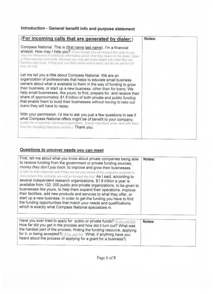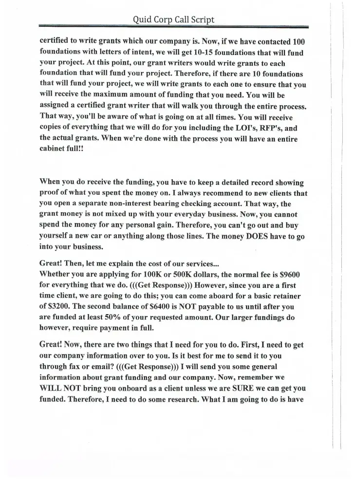The call you over the phone and tell you if you pay them a fee and buy a business plan then they will help you get hundred and thousands of dollars in grant money. It is a lie. Ask the FBI they have not ever helped one company get a penny of funding.