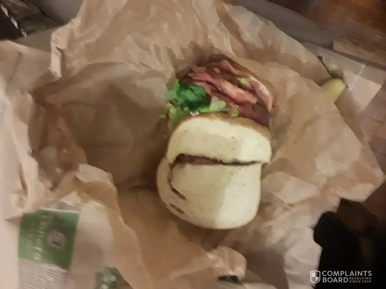 I waited patiently for my order, stepped out of Panera Bread thinking they had gotten the order right this time but I was wrong. As soon as I got into the car and checked my order, I realized it was a half sandwich I was given. What I ordered the pervious day were 2 whole steak and arugula sandwiches, but this time I was given half a steak arugula sandwich to replace my order of the previous day. I ran back to Panera Bread to complain but it was locked and I couldn't get in. They had locked the door because it was after 10pm which was after work hours.