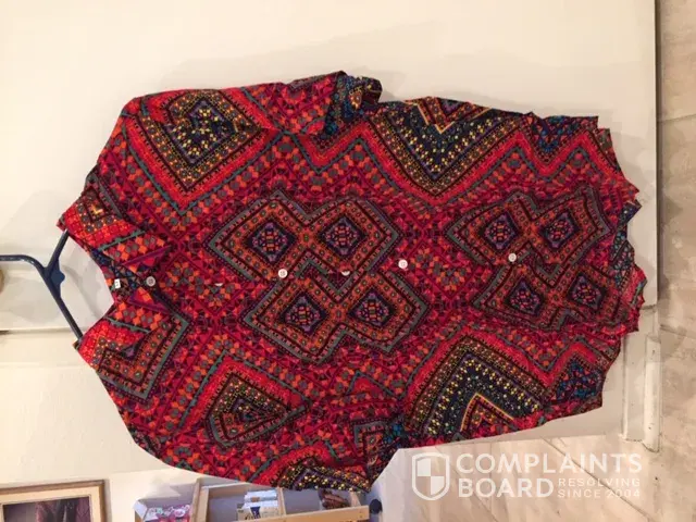 I ordered a shirt from this company online about a month ago. Just received the wrong shirt. I ordered their Ethnic Floral Print shirt. What I got was a very ugly print shirt. Not my style. I'm asking for a full refund including shipping, or the shirt I ordered. Photo is the shirt I received. I've been trying for two days to get acknowledgement of this complaint. So far I've heard nothing.