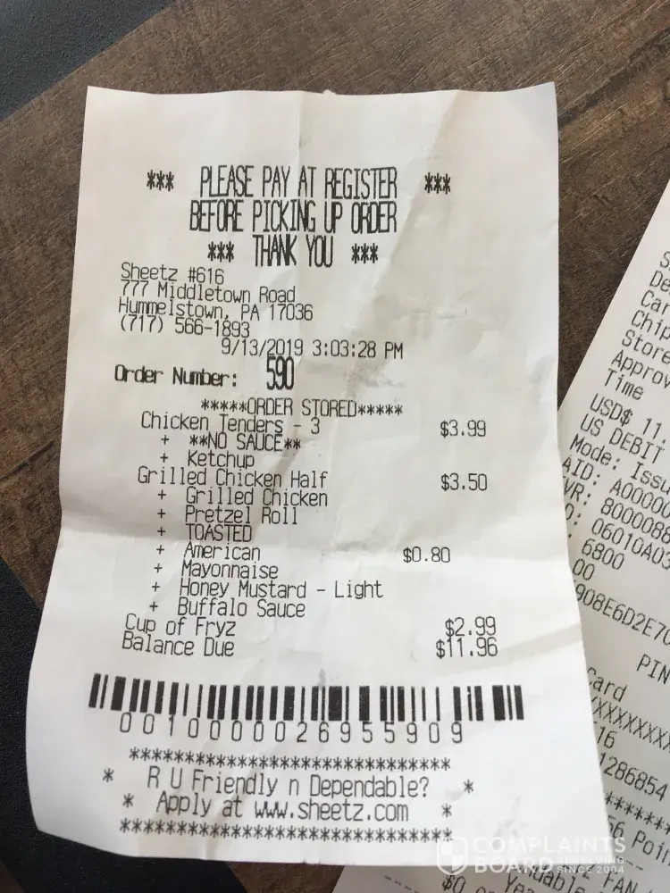 I asked for reg mayo, LITE honey mustard and reg buffalo sauce.