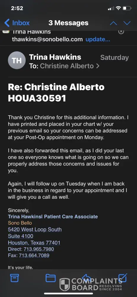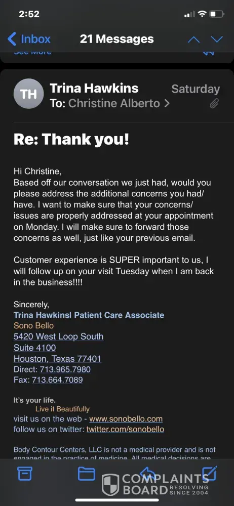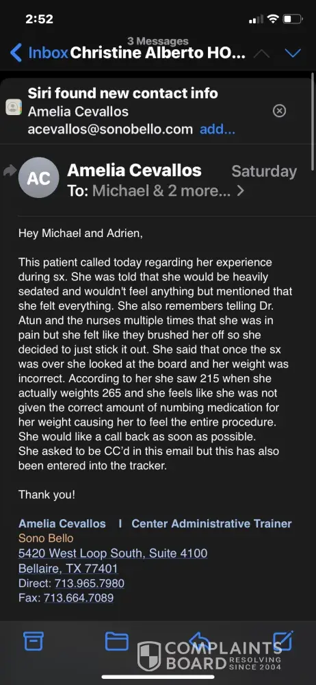 Sono Bello reviews and complaints 3