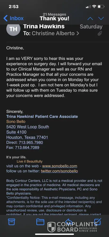 View all 235 complaintsSono Bello - Sonobello liposuction with laser