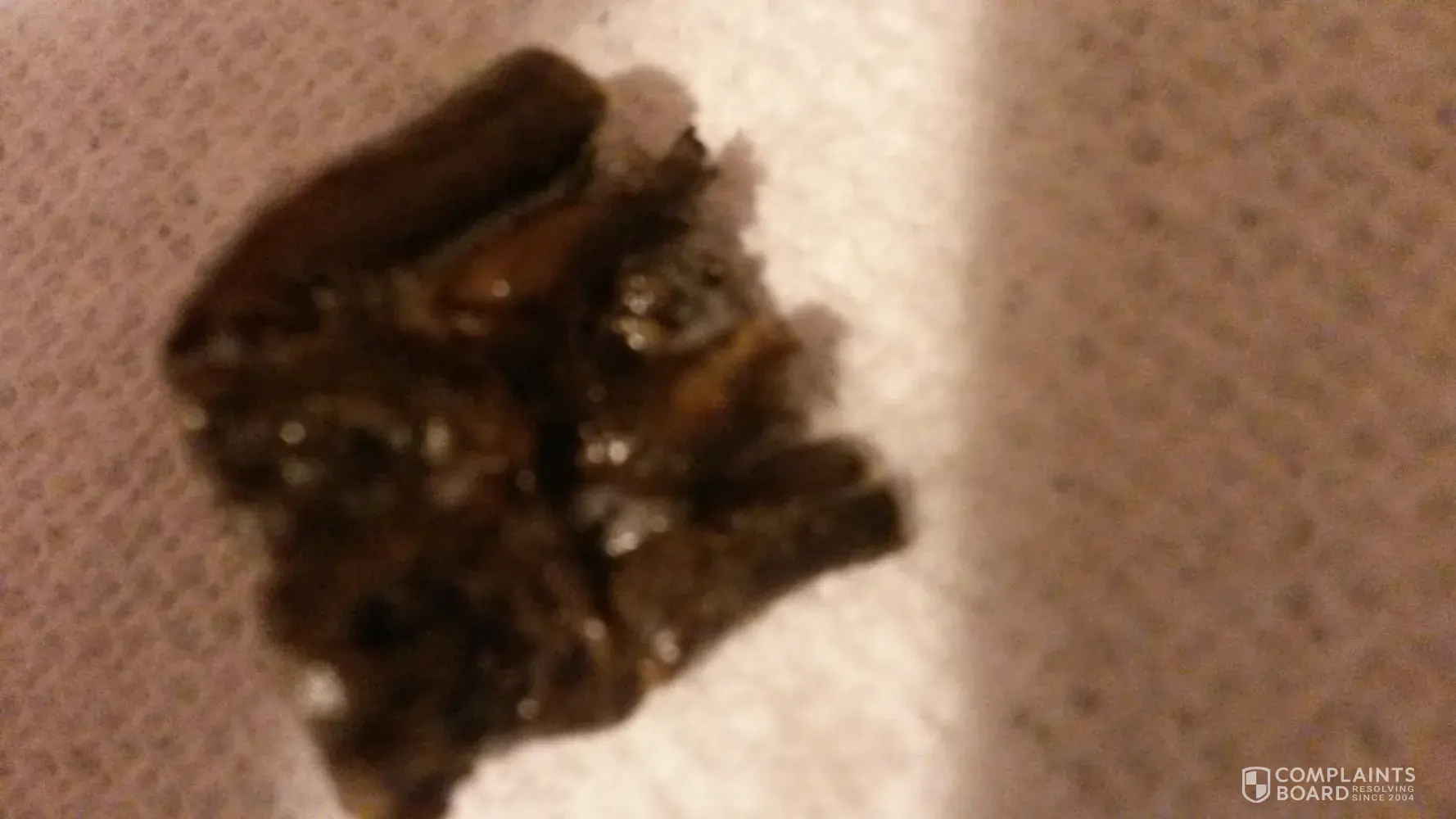 My 10year old son took a bite and found some black hard thing in it. It freaked him out plus I ate it before he found it. I hope I don't get sick. Thank God I didn't bite it. It would have broke my teeth. Thank God it didn't his either. What is this?