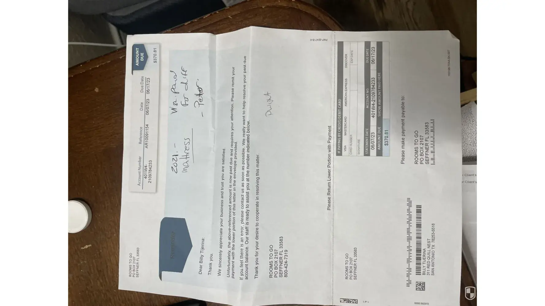 After this exchange we have not heard from Rooms To Go and have paid off both Synchrony credit cards. All of a sudden a couple of months ago, we get a generic notice from Rooms To Go that we owe $370.81. This notice does not note what the charge is for so we call Synchrony Bank who confirms our accounts are paid off. We attempt to call the [protected] number on the notice and no one answers and a weird Cisco answering device picks up but always says there is no operator available. We then call the local Rooms To Go location we bought the furniture from and they can’t help and say it must be a scam letter.