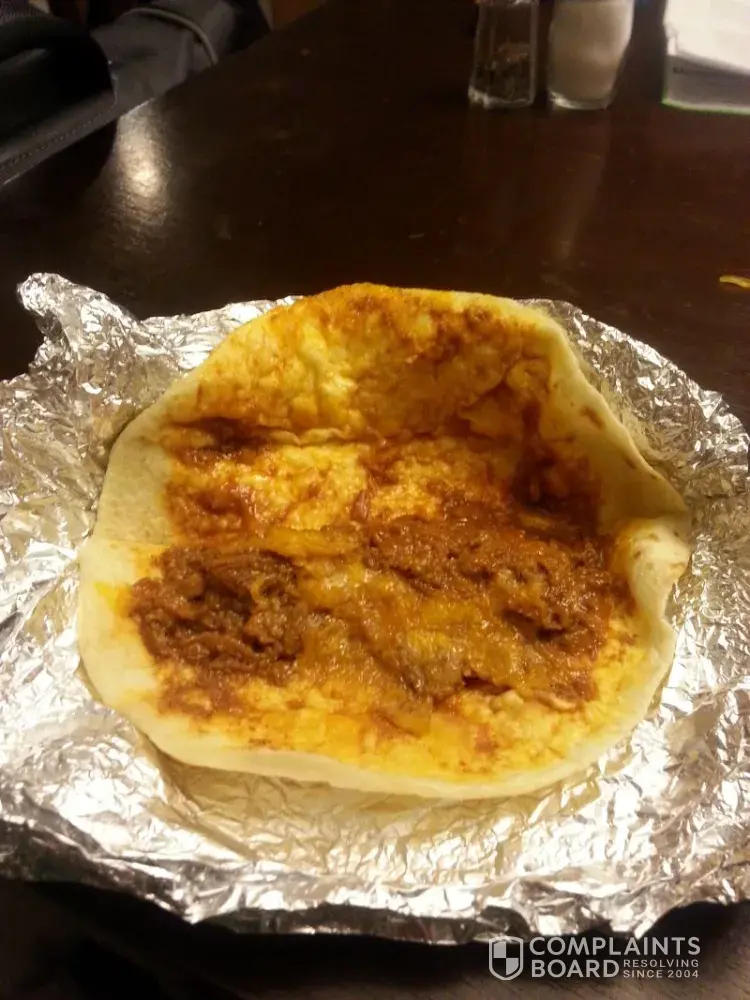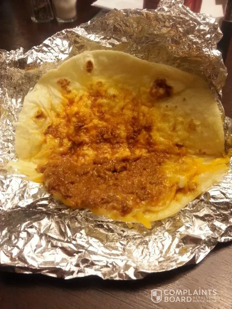 Food was disgusting. I picked up breakfast after work. I work nights and was taking my kids something to eat before taking them to school. It was cold, poorly made, and tasted horrible. Just to give you an idea, I'm including a picture of 2 of the tacos i ordered, carne guisada with cheese. I had ordered a few other breakfast tacos as well but didn't take a picture. This is what they passed off as food. Ridiculous. Disgusting. NEVER going there again.