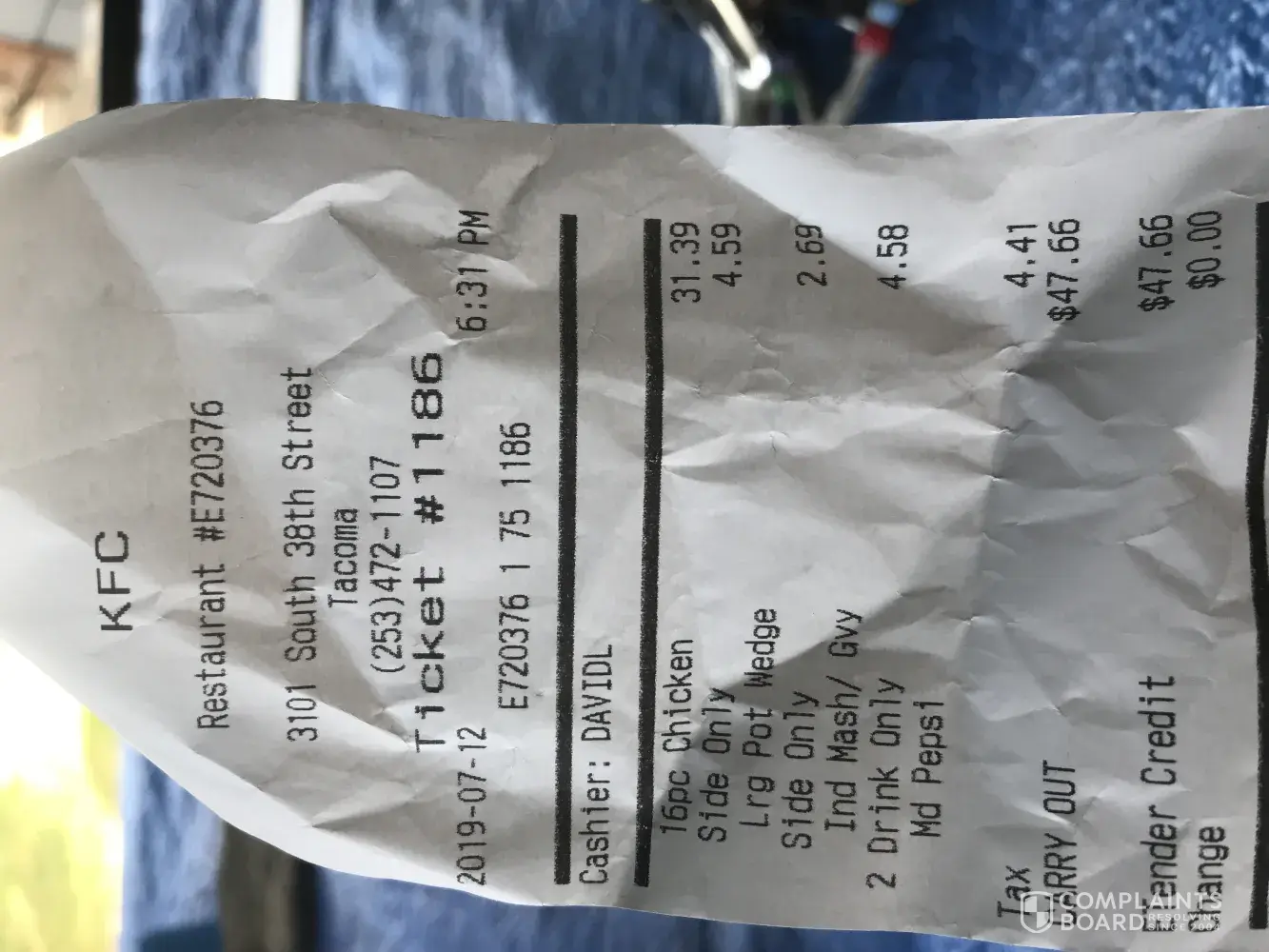 On Sunday afternoon Jan.8,2023 about 1pm my family and I Arrived to 3101 south 38th street KFC when my 2 daughters and I walked in first thing that was said from the cashier for front counter (forgot her name) was “Great it’s going to be [censored] show today†not a good sign for me but my family wanted chicken so I gave them the benefit of the doubt and maybe she’s having a bad day so I dust it off and waited my turn to order I then ordered 2 Pot pies,2 mash bowls,8 piece chicken tenders meal with mash potatoe and gravy with a side of extra gravy and 24 pieces of Hot wings (no sauce). The lady said it will be about 9min wait for hot wings who doesn’t mind fresh wings? My order was $94.and some change. So we waited ofc I’m going to wait I waited 15 minutes so I went up to the counter for my food and she told me my food wasn’t ready yet it’s going to be about 10 more minutes I then responded that she told me 9 minutes to cook at this point my 2 and 3 years old daughters are getting irritated because we have waited more then what was expected but I did order a lot of food so I remain patient then 10 minutes later finally my food was ready I normally check my food and I do this every where just because I have been victim to not getting what I ordered especially from this location anyway I check my food and sure enough items were missing but that’s not the bad part and thank God I was paying attention because I checked my hot wings and wings were RAW! Like still bleeding but the outside was fried oh my gosh I was mad at this point so I told Nathan the manager and he told me as I am showing it to him and breaking the wing apart that it’s raw he got offensive right away and called me a liar! Told me to go someplace else to my wings even told me that he would eat it as well that it’s just a vein of the chicken. Are you kidding me?! I spent almost $100 bucks just to get this type of customer service from a MANAGER?! I even told him to smile and let’s look at the facts that is right in front of his face and still in denial and still he calls me a liar. This is ridiculous your manager Nathan needs to do better and be better! I know there’s probably a good reason why you guys chose him but today Jan8,2023 wasn’t it he didn’t show no sign of compassion or sign of apology. Nothing! This frustrated me so I just left I couldn’t deal with him anymore because there was no sign of remorse of what he did. I will be calling in the morning for my full money back my family and I didn’t deserve this kind of treatment and I demand justice of him being retrained or demoted and my full money back.