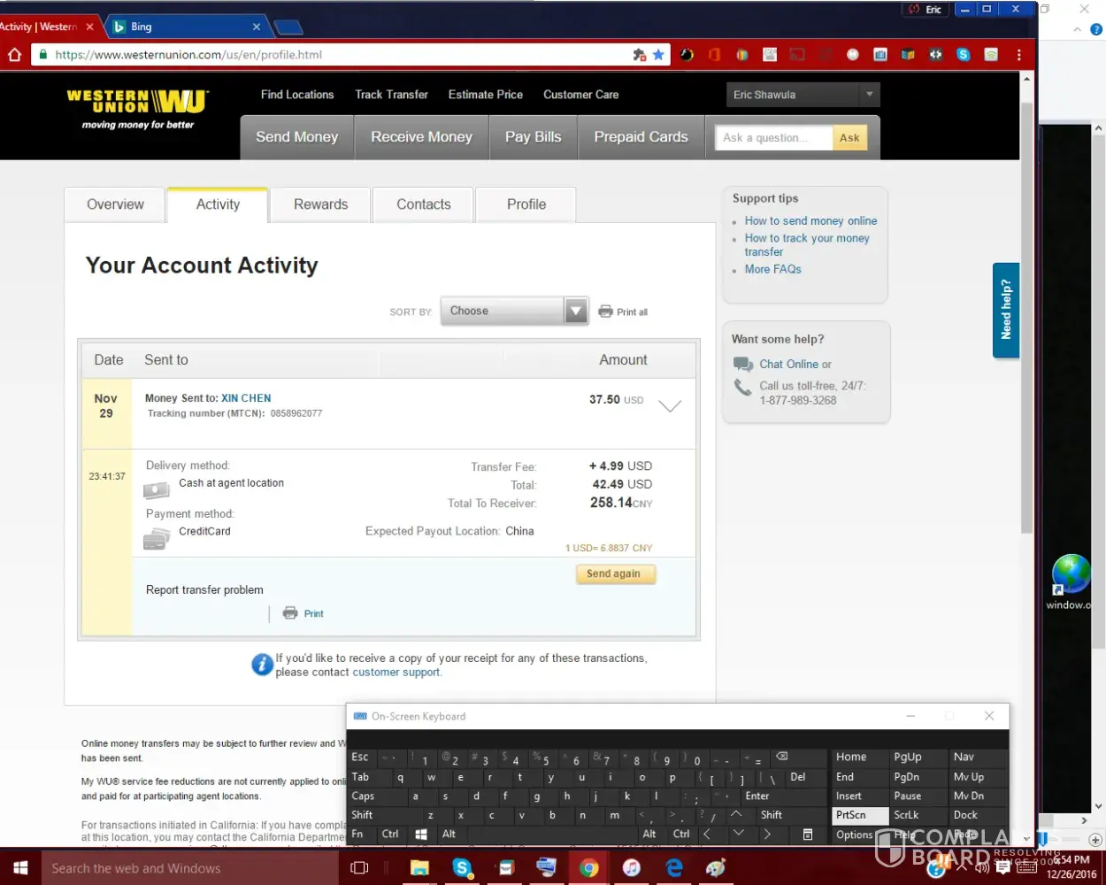 Ordered 1 carton of benson and hedges. (Order # 52915) on 11/29/2016. Sent $42.50 via western union to xin chen. (Mtcn [protected]). They received money but have not shipped. Refuse to answer e-mails.