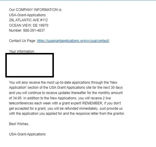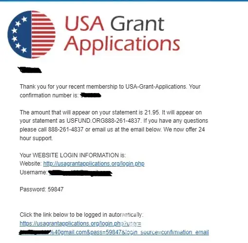 This company is a sad case of a business model. Fraudulent practices at the outset. What a shame that people have to set up a scheme to cheat and hustle the American people. They say that there is a grant for you, but at the end of the site there is a place for you to put your credit card information. What?! Then the person that set this fraudulent company up, uses a websited called USA Grant Applications. Doesn't that sound legit? USA? Oh and it has an American Flag as its logo. Breaks my heart. This company is still allowed to do business after all of these complaints of schematic dishonesty? I can't believe it, at all.