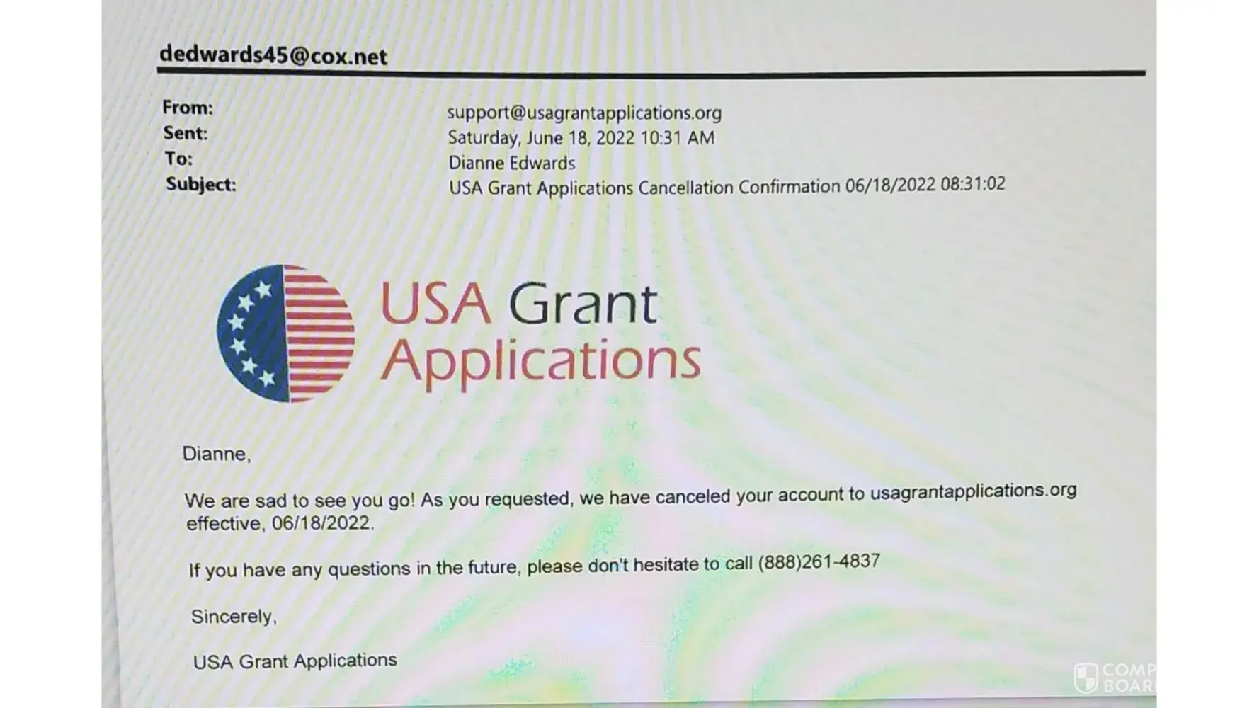 I need a grant and was scamed last night. I tried to get back on their internet site to cancel my order for $24. 95, but was unable to do so. I contacted my credit card and was told the charge was on my credit card but it had not gone through yet. I filed a complaint against this company with my credit card, and was told to call back on the 6th of feb to...