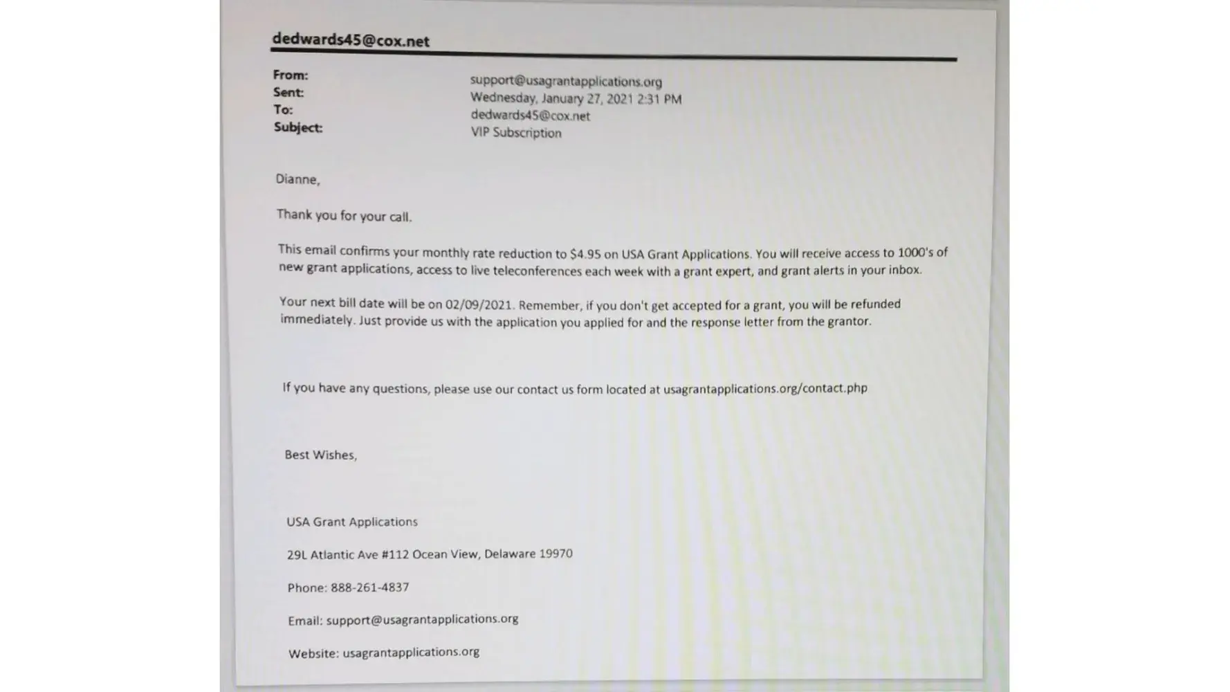 When I called to cancel my subscription, they did give me a small refund, which was nice. But overall, I wouldn't recommend this website to anyone looking for help with grant applications. It just seems like a waste of time and money.