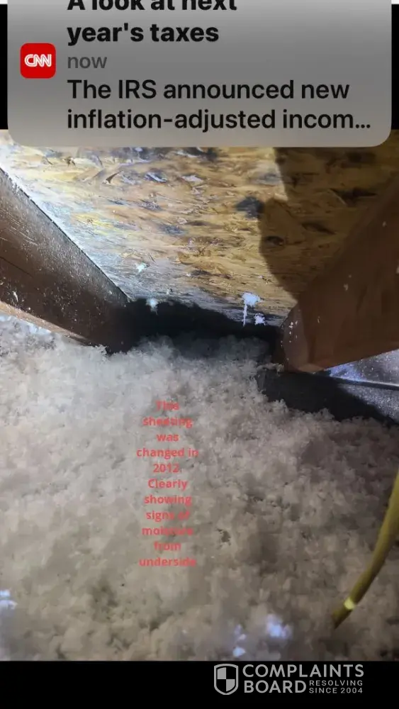 We had USA insulation come out in 2017 to add insulation to our attic space. We only discovered the issue 2023 that our roof is now rotted due to them blowing insulation over the soffits and heaping insulation along that area to where no air flow was happening. We because of medical conditions do not go up and inspect the attic space. The moisture only...
