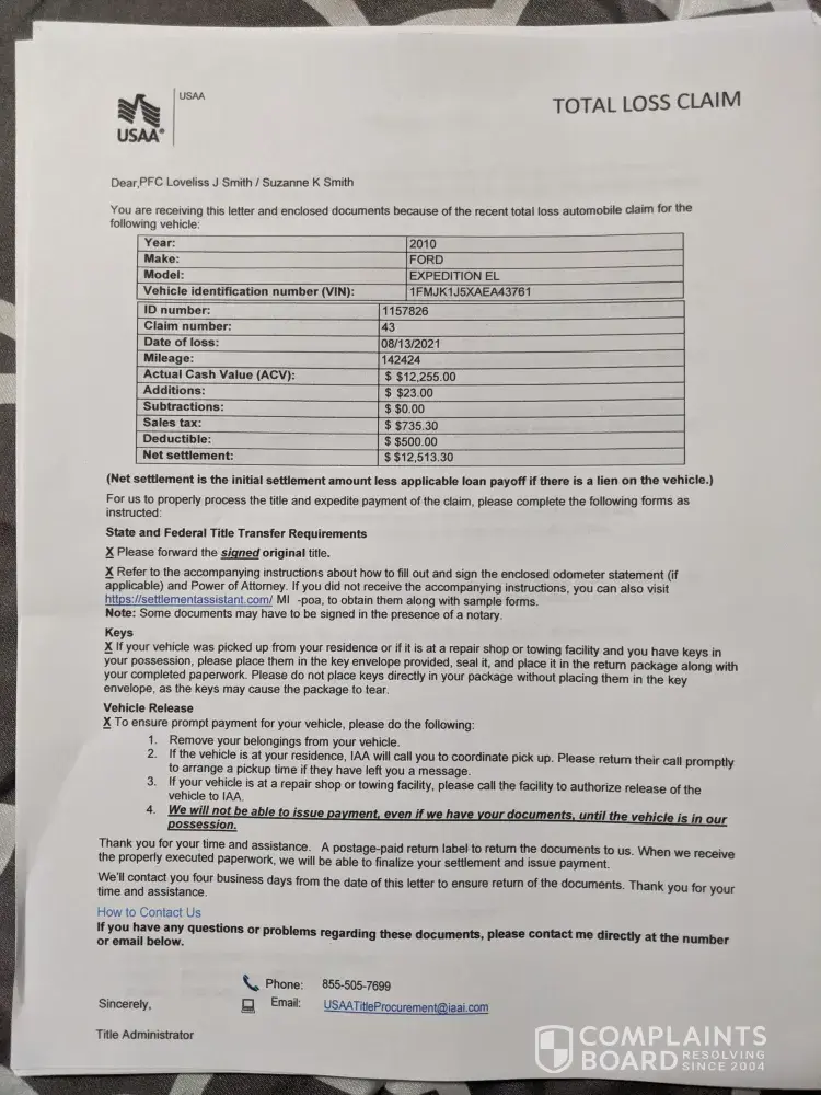 I've been a long-time USAA member and am severely disappointed in the decline in their treatment throughout this entire process.