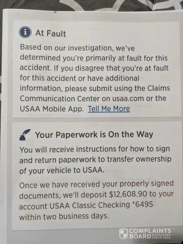it sounds that USAA didn't even investigate or didn't care to do so.
