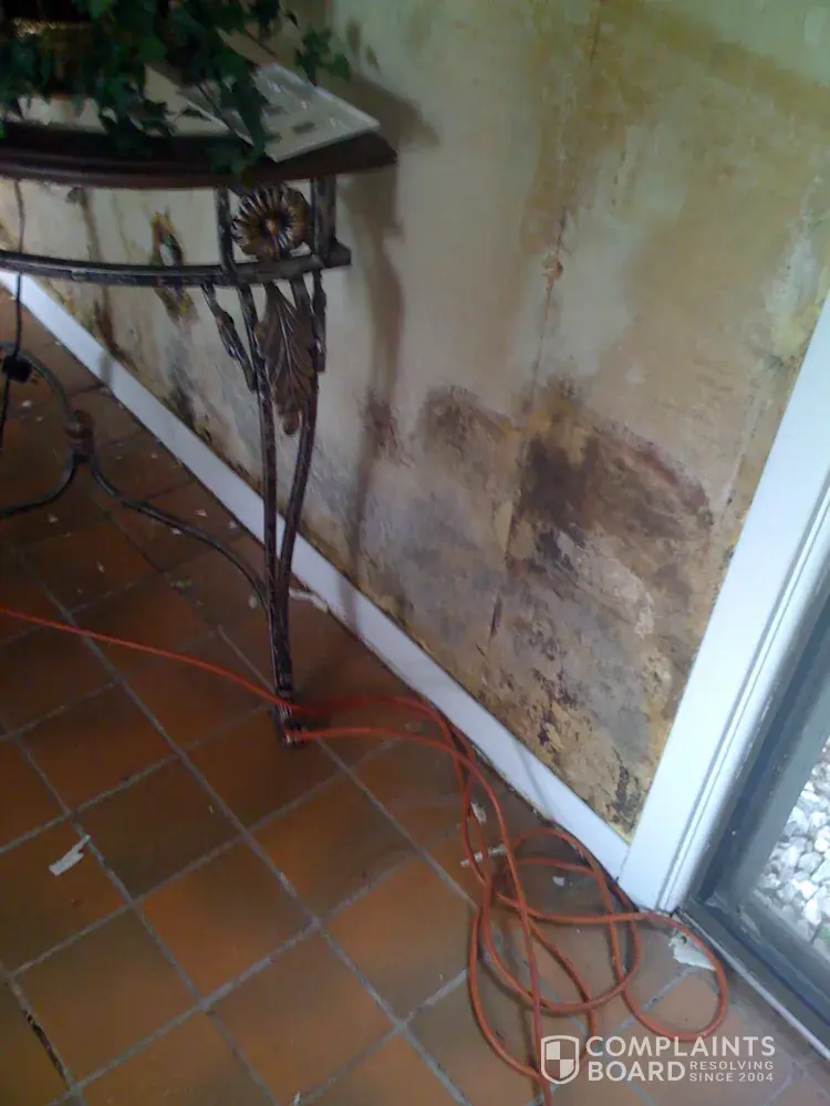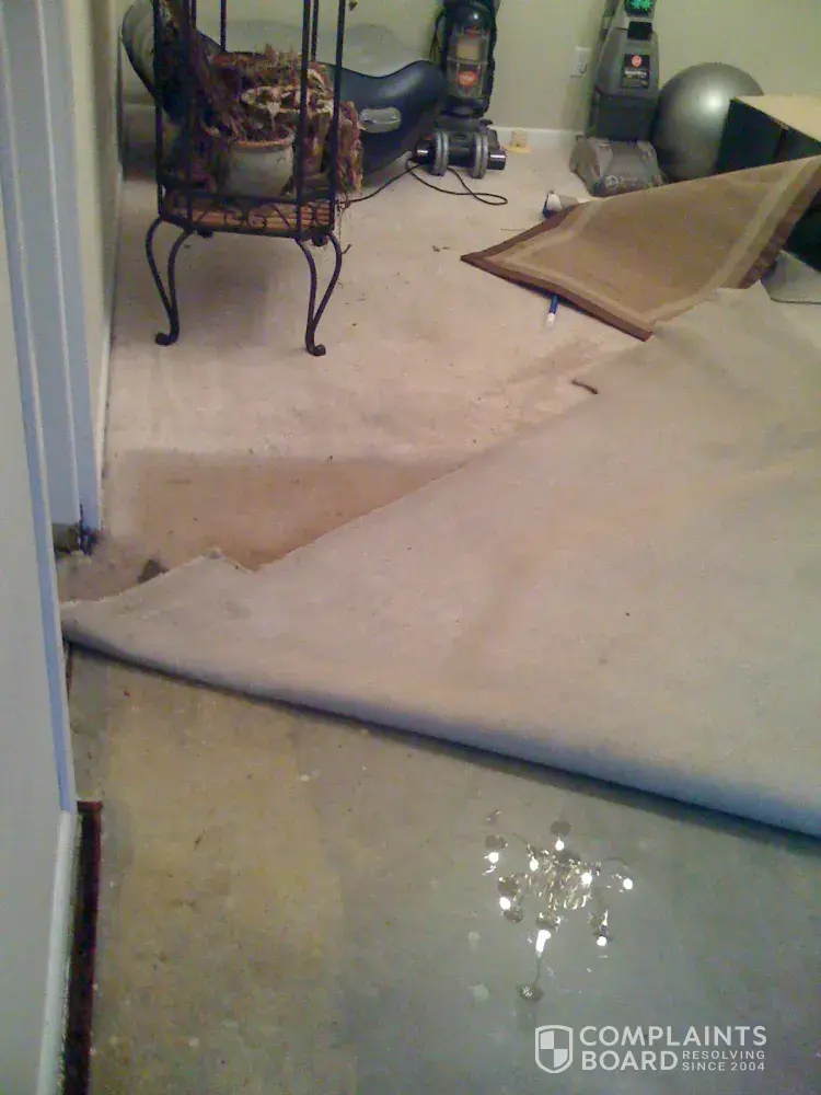 2. During the second week, we were flood before the same adjustor came back out. Before the initial flooding, our yard men cleaned off the roof and gutters to include the atrium. Also during this storm, it began to rain inside of the house. The furniture was damaged and the floor soaked.
