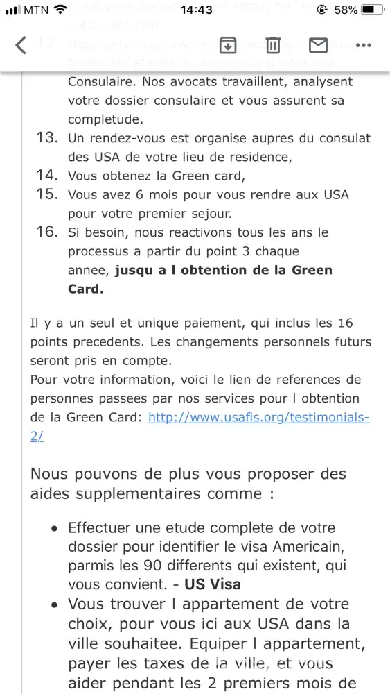 My partner and I bought in 2012 a 10 year application for the green card, although we know and understand that’s a lottery and we were not successful during That time, a few year into the application (2016) USAFIS contacted us and filled our hopes with false testimonies and glass information, they told us that we were on the top of the list for the selection process and sold us a package for around 3000 usd what included solicitors, tickets and more.. I have been trying to get that money back as we be we used it and they sold us something that wasn’t worth it for us as a family.