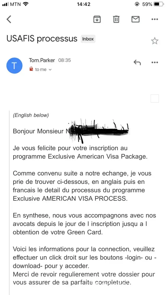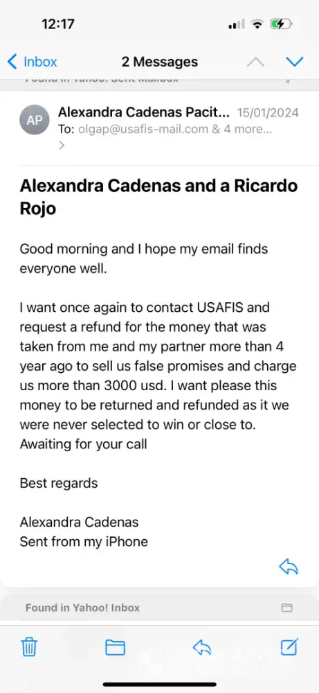 My husband nos and I bought a 10 years package with USAFIS for the green card lottery, on 2016 the company contacted us and told us that our file was preselected for the green card lottery and we needed to have a package that the were offering that included, the first tickets to travel to the USA, legal assistance and much more. The package cost around 3000 usd. Since then we never heard from them, we contacted them to request the refund as that was a miss sold product. I want the money to be refunded ASAP as it’s not fair that this company took money for no reason.