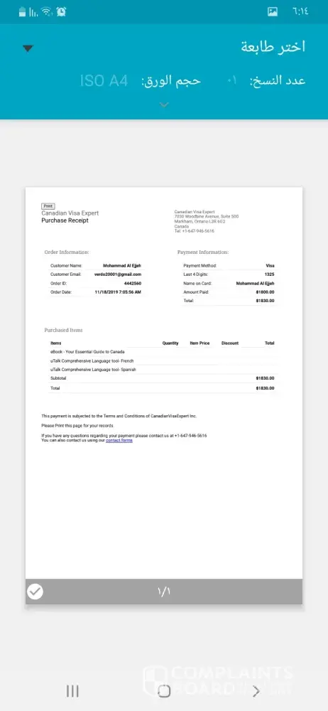 I have ID number [protected] at CanadianvisaExpert they had an Assessment to my profile. I get 65 point of 100. Mr Faried Ibrahim at usafis company call me to complete my process of immigration to Canada and ask me to pay1830 $ and to send him my documents of my family and the certificate of marriage, photos of passports. After I paid the money no one call or send me anything to continue and reply to my emails. No one clarifies what's going. I'm so confused . Please help me to understand . In addition to this. I found my receipt have another email so I could make this new email to be able sign in my account to see if it's active or not and there was new things that happen. But nothing change just the assignment mark and the items that I have paid for not what Mr Faried Ibrahim told me . It's about pruchours to learn Spanish and French. Do you believe that I'm going to pay for some pruchour 1800$. This what I have now. Hope you read all what I wrote.