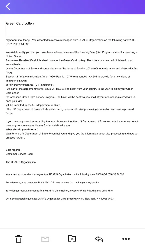 I Also received a mail from Usafis Fake Lottry...Bellow