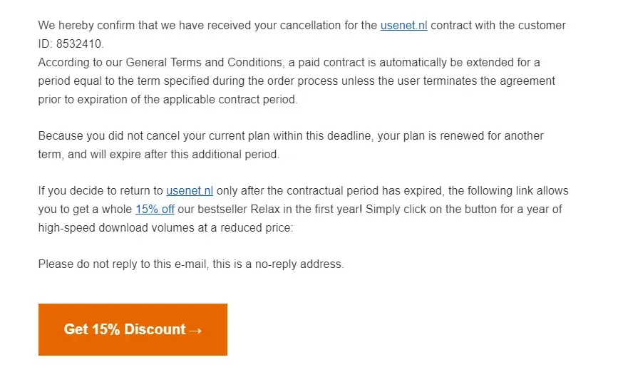 I had an account of usenet.nl, but I canceled after less than a week. After that I received this email: