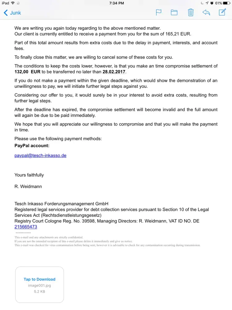 Teschinkasso ? Did you ever get a mail from court or anything?
