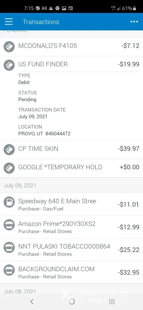 Us fund finder has took 59.95 twice off of my members 1st bank card .asap you may reach me at [protected]@gmail.com or my number is [protected]