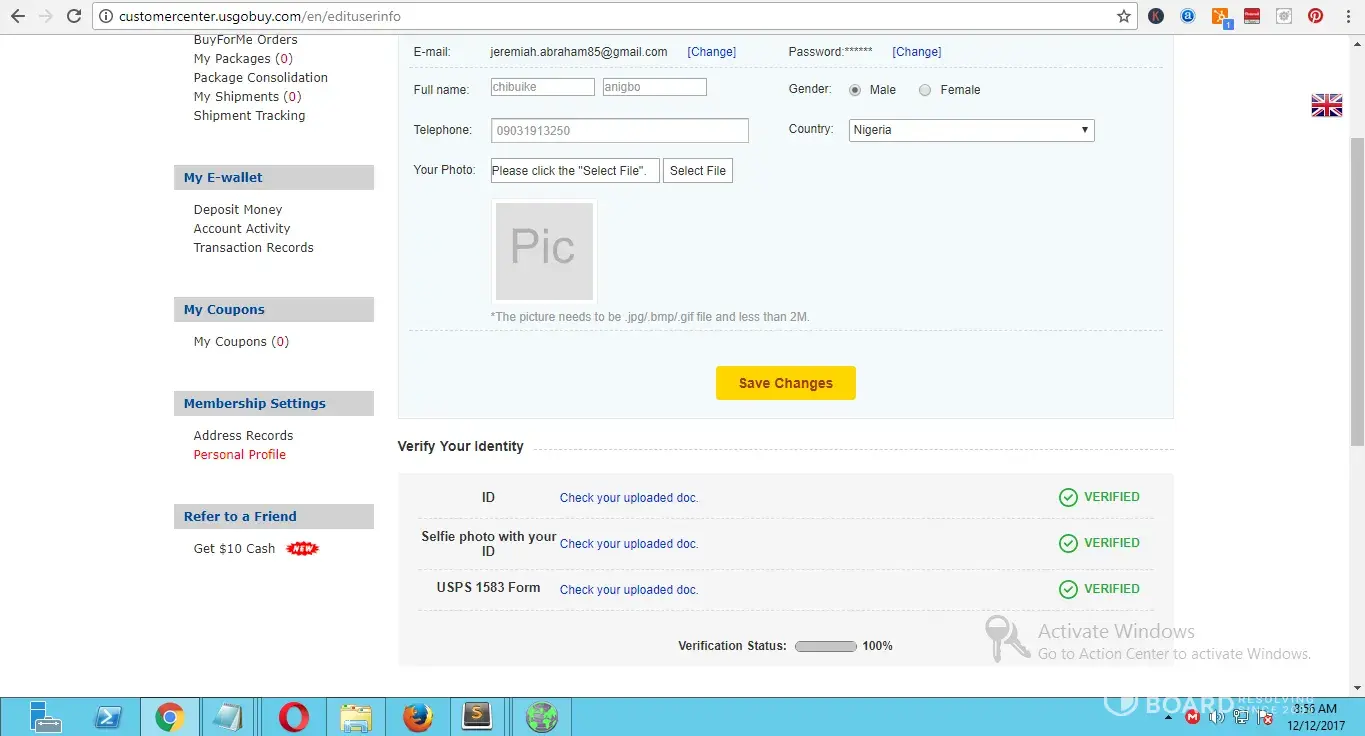 Weeks after verifying my identity, two of my parcels are still being delayed: U20171130745710 & U20171204745995.