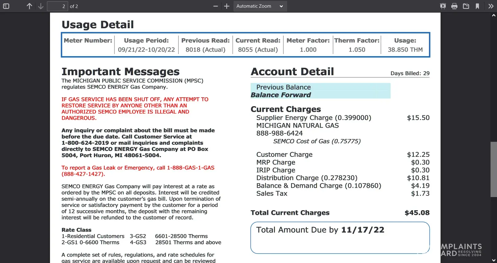 Read full complaintMichigan Natural Gas LLC - Utility gas (home heating) predatory scam