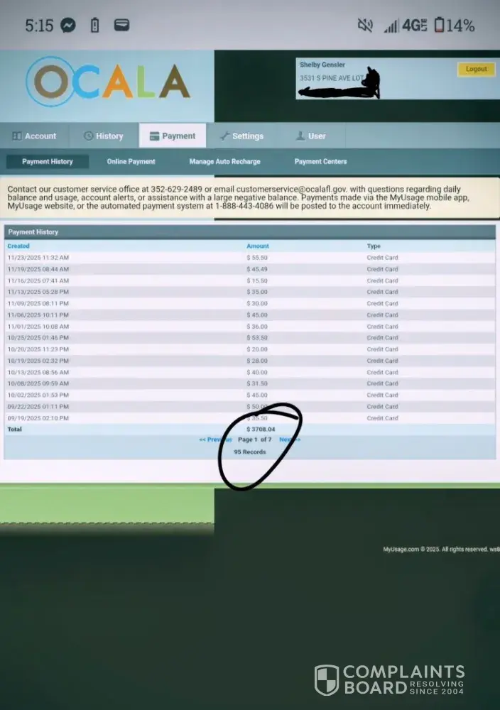 Now, I've lived at my address for about 17 months, and the whole time I've had Ocala Electric company for my utilities on their pay as you go plan. The issues that I'm facing are outrageous for someone who lives alone and doesn't use the electric but for the major appliances. Since I moved in last July, I've already spent well over $3600.00 on just...