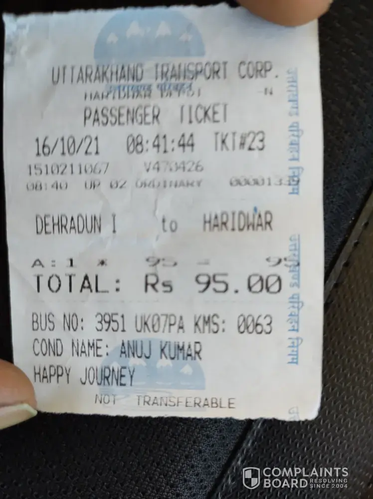 Today we I amd my family are travelling in the uttarakhand depo bus UP 11 T 3562. from roorkee to sahranpur and bus conducter has taken the charge of 3 full ticket and give us 2.5 ticket which means they earn from the tickets after asking about it they are ready to fight with us and they give manual tickets to the many passenger in the bus by which they earn big amount of profit from one round... take some action...