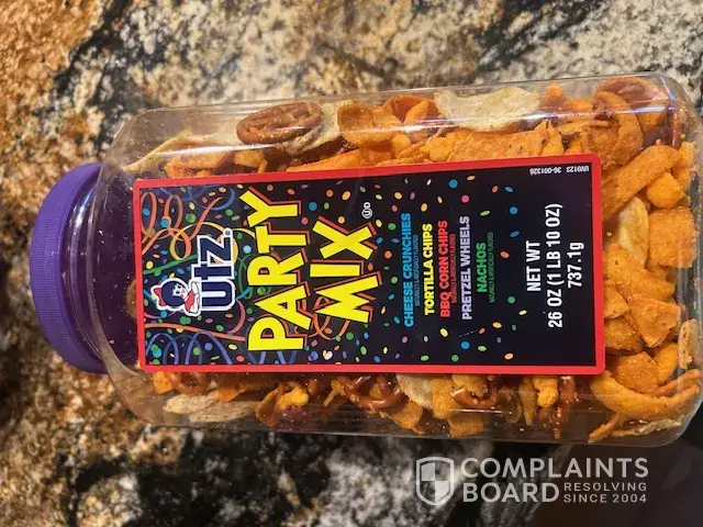 This is the first time I have ever formally complained about any food product. However I feel this product based on the price was not fit to consume upon the initial unsealing of the container. I no longer have my receipt, however I know I purchased a container of UTZ Party mix at my local Farm Mkt store within the last 30 days I brought it home and...
