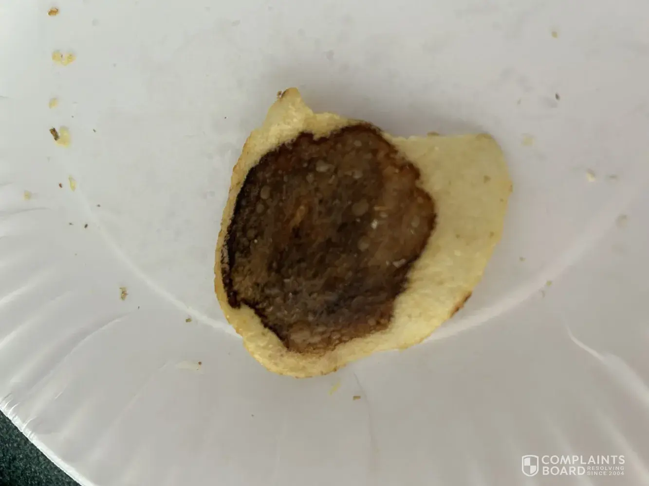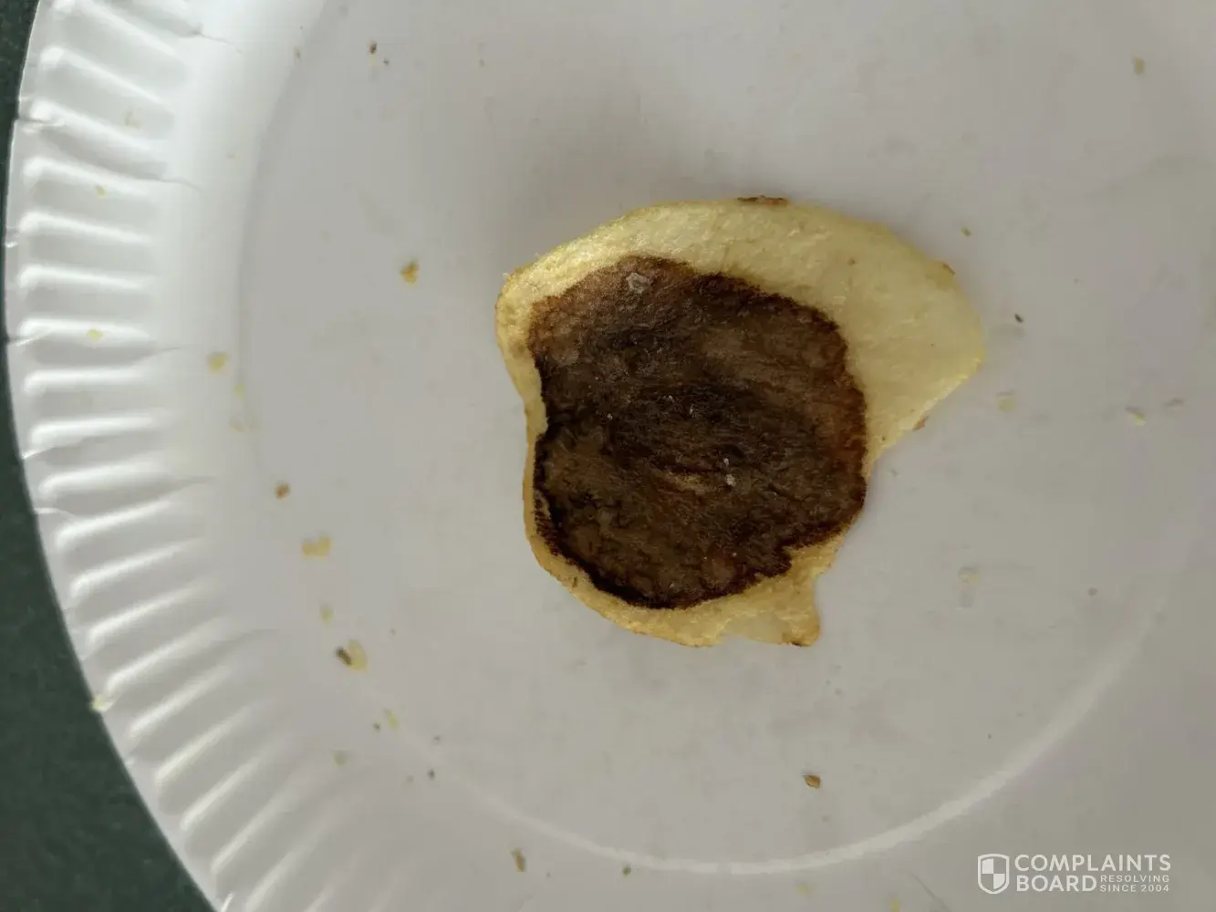 Bags of chips purchased contained at least 50% broken in small pieces and one of the large chips had a big black center.