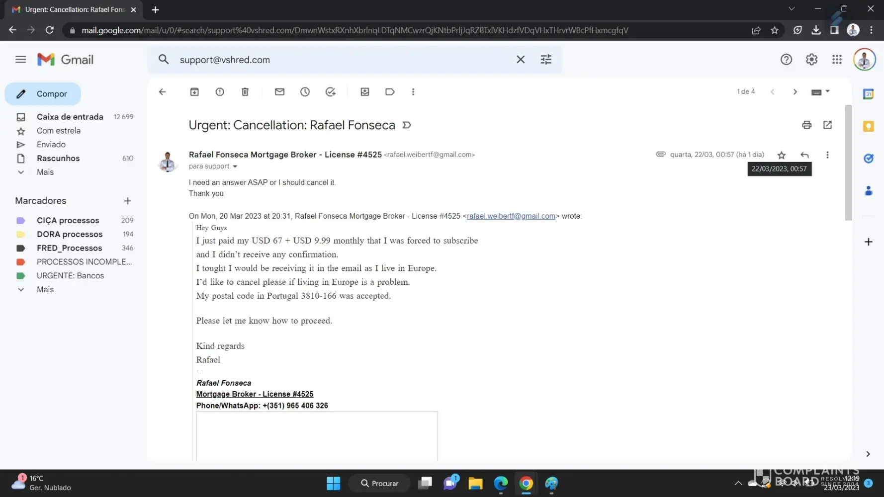 I finally heard back from Brandon about forgetting about me on April 4, 2023. At this point I still have nothing from Vshred that was promised. I have lost faith in Vshred's ability to help me successfully. At this point I find this whole mess a Breach Of Contract. I want a refund and to cancel. I am having trouble getting anyone to acknowledge me or give me a phone number to resolve this issue. I don not see any contact I can attach.