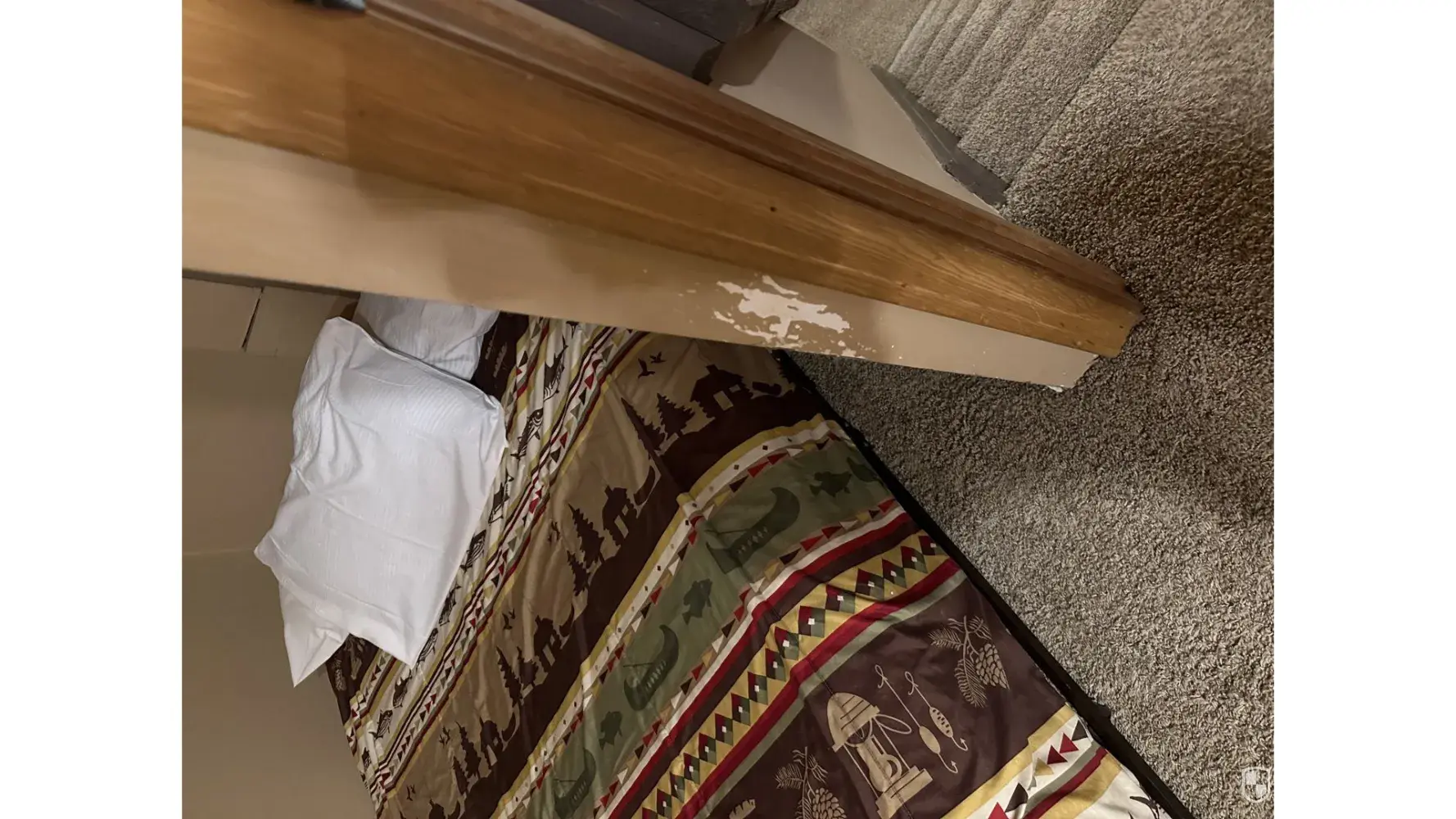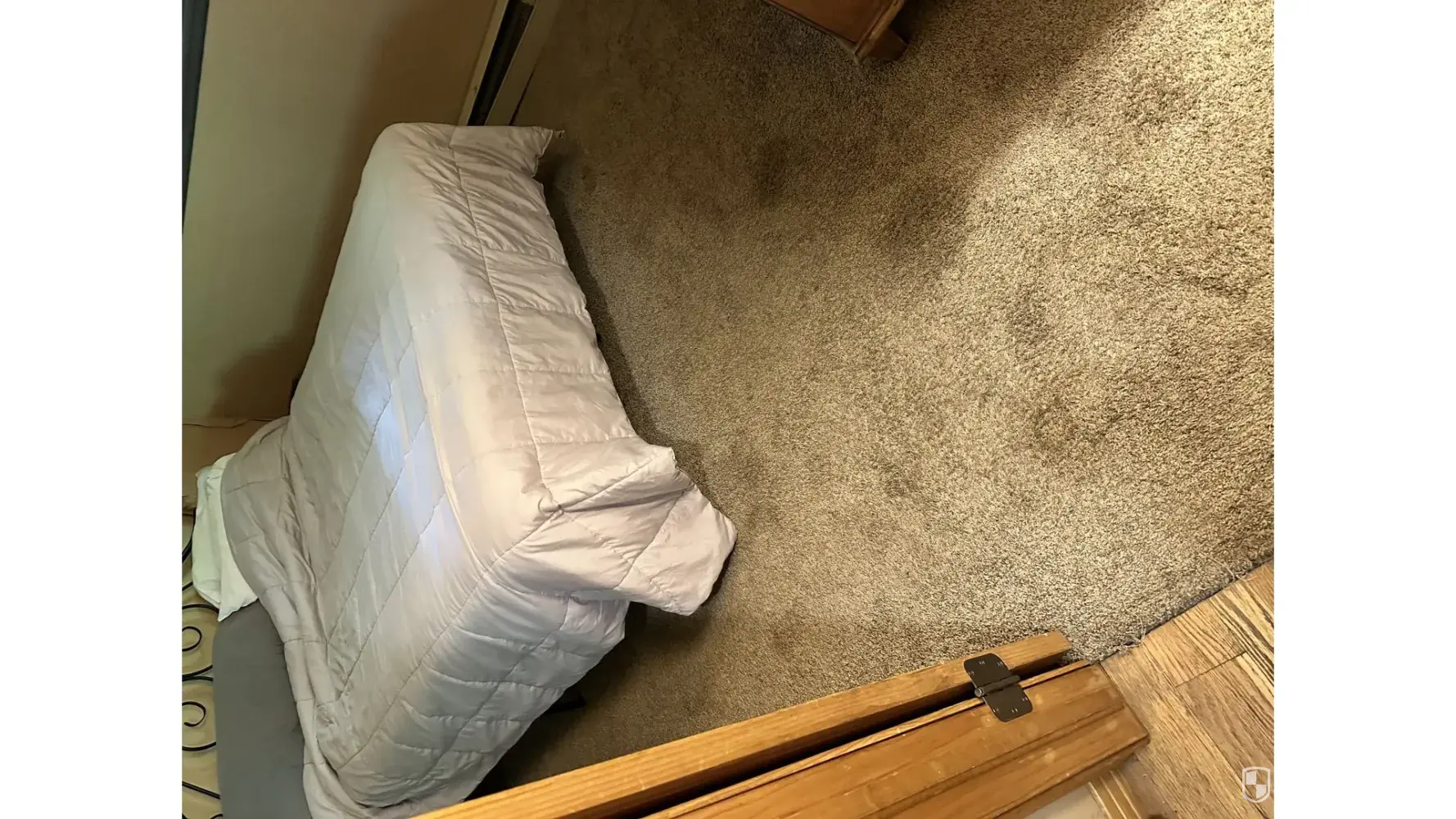 Main floor bedroom comforter has a huge tear in it and the stuffing inside is falling out.