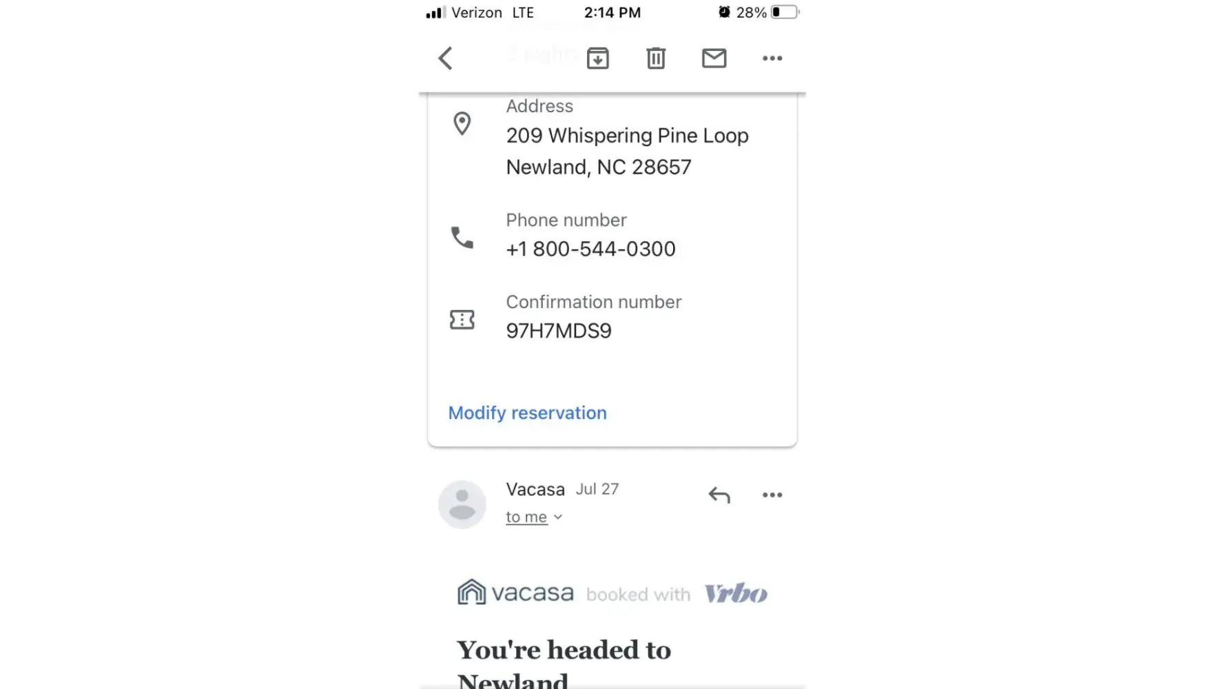 Was able to provide her the confirmation number. She said she would call the local property manager and would call me back. Needless to say it's been more than an hour and I'm still waiting for a call back. I guess we will need to book a hotel for tonight. I am beyond frustrated!