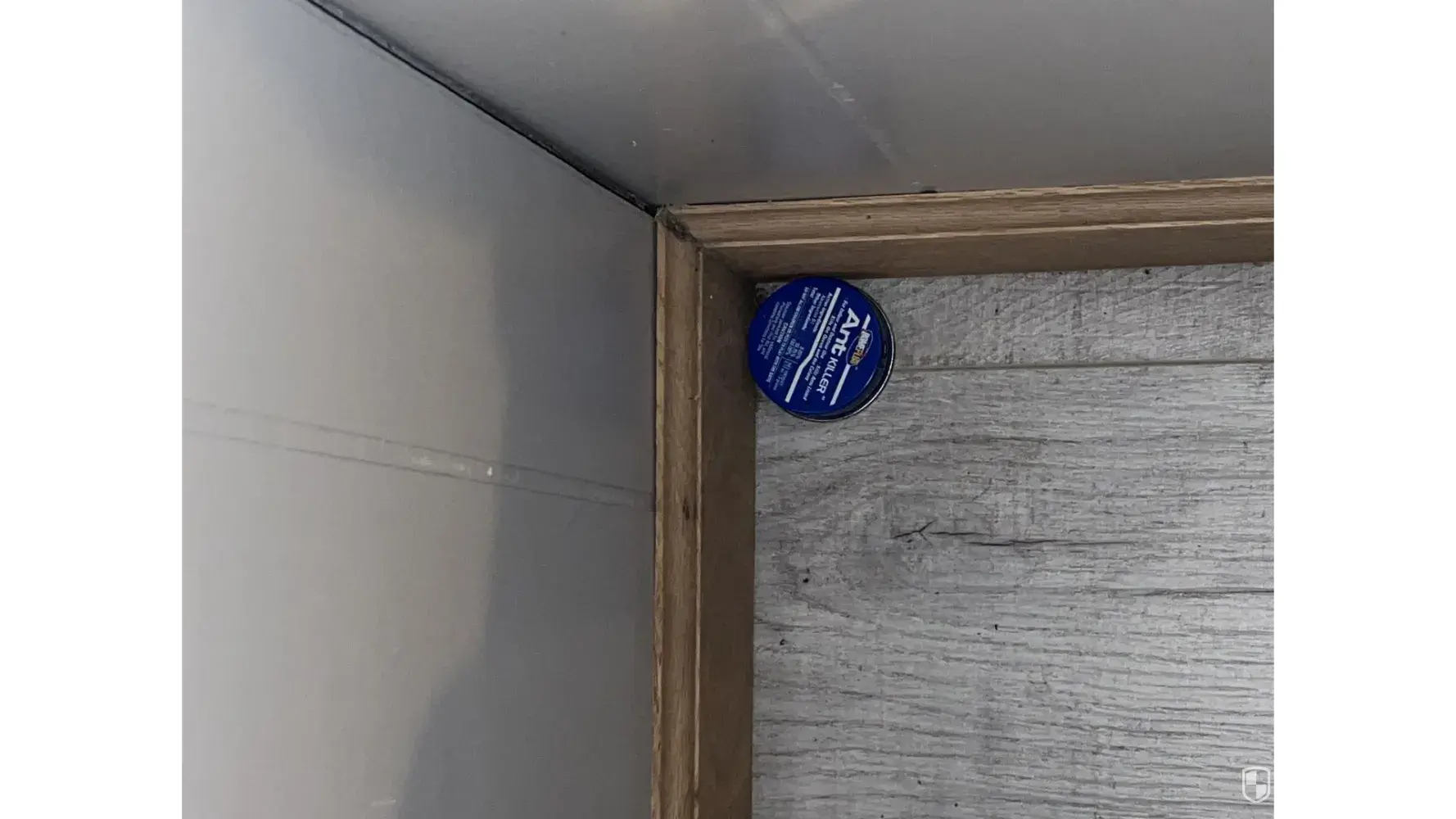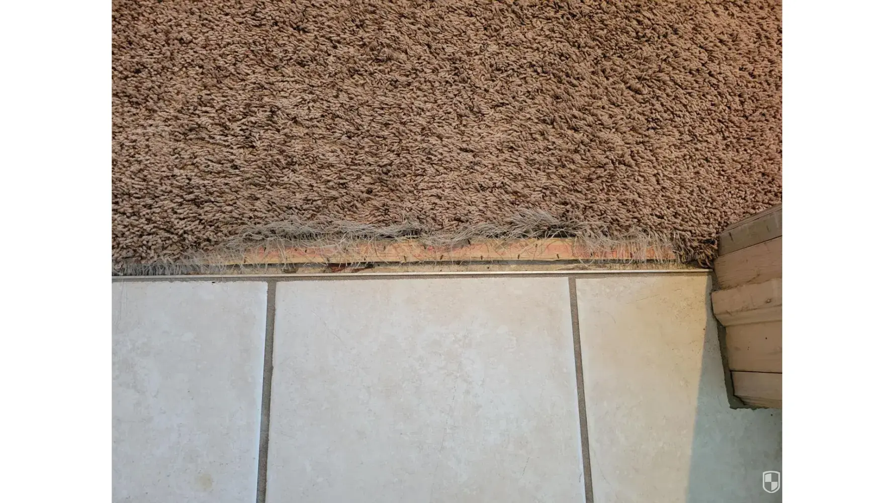 A tile from the bathroom is just laying on the floor behind the bathroom door.