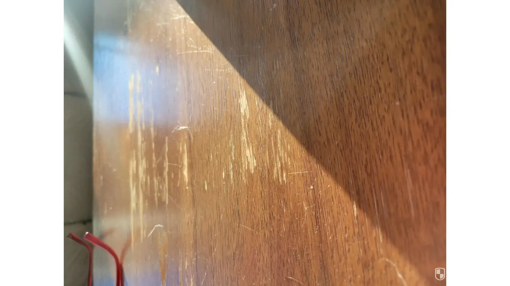 The back of the front door and garage door leading into the garage has huge scratches all over them.