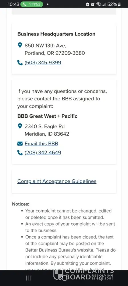 However ComplaintsBoard has detected that: