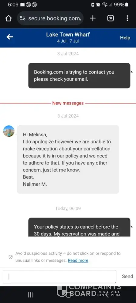 Your policy states that one should cancel before 30 days. My reservation was made less than 30 days ago, so it seems like your company is inappropriately withholding people's money and not allowing them to amend their stay dates. Both mine and my attorney have perused your policy. Your policy doesn't stipulate that you can withhold payment for guests who...
