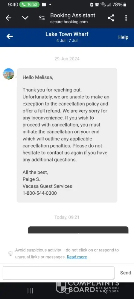 Informed Vacasa. We left immediately