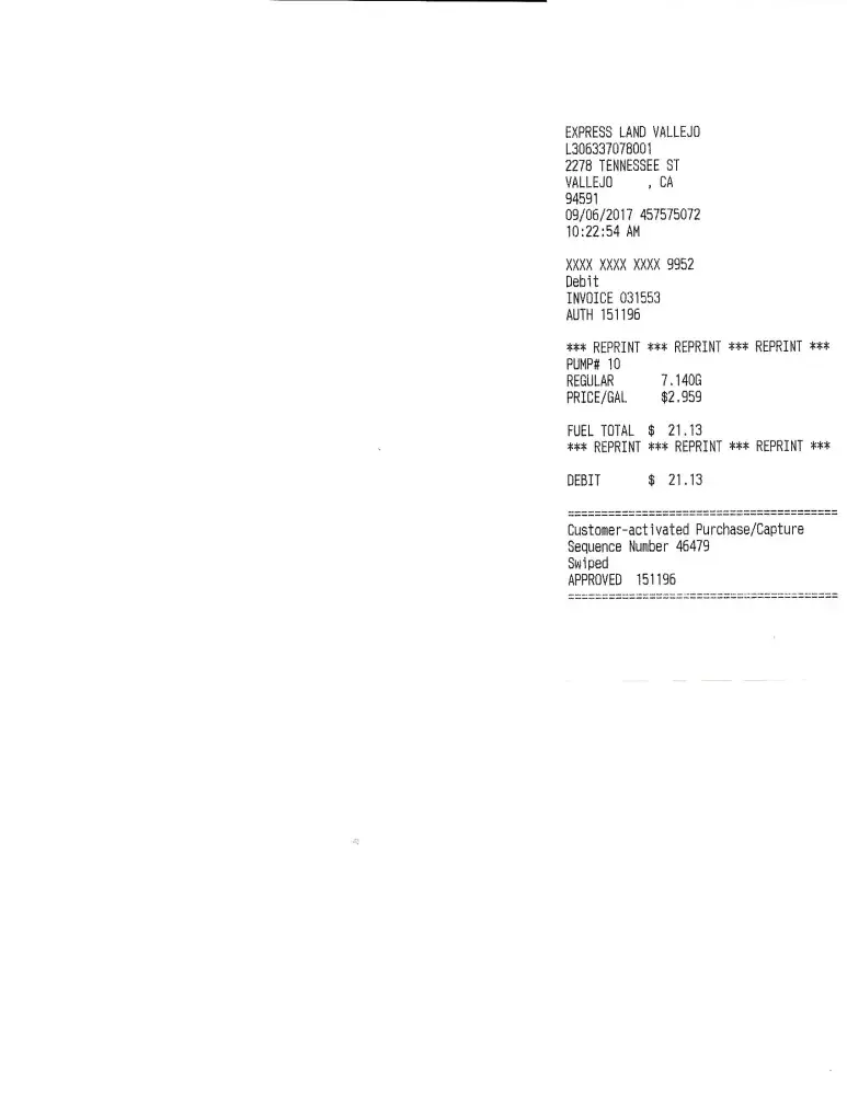 I am a courier and my routes take me into some very rural areas so I always begin my route with a full tank of gas. My tank showed I had 3/4 of fuel before entering my debit card, I then entered my pin, selected regular gas began fueling with hose in tank. I washed my windshield then requested my receipt. The Pump (10) indicated to see cashier. I entered the facility and was give a reprint receipt, (note attached photo). I returned to my vehicle only to find my tank still at 3/4 full. My card was charged $21.13 for fuel that in fact never left that pump. I attempted to explain to the two employees and their response was that the pump is accurate and the problem is with my vehicle. I drive a 2015 Nissan Sentra which recently had full service. How does an individual prove they never received with they paid for?