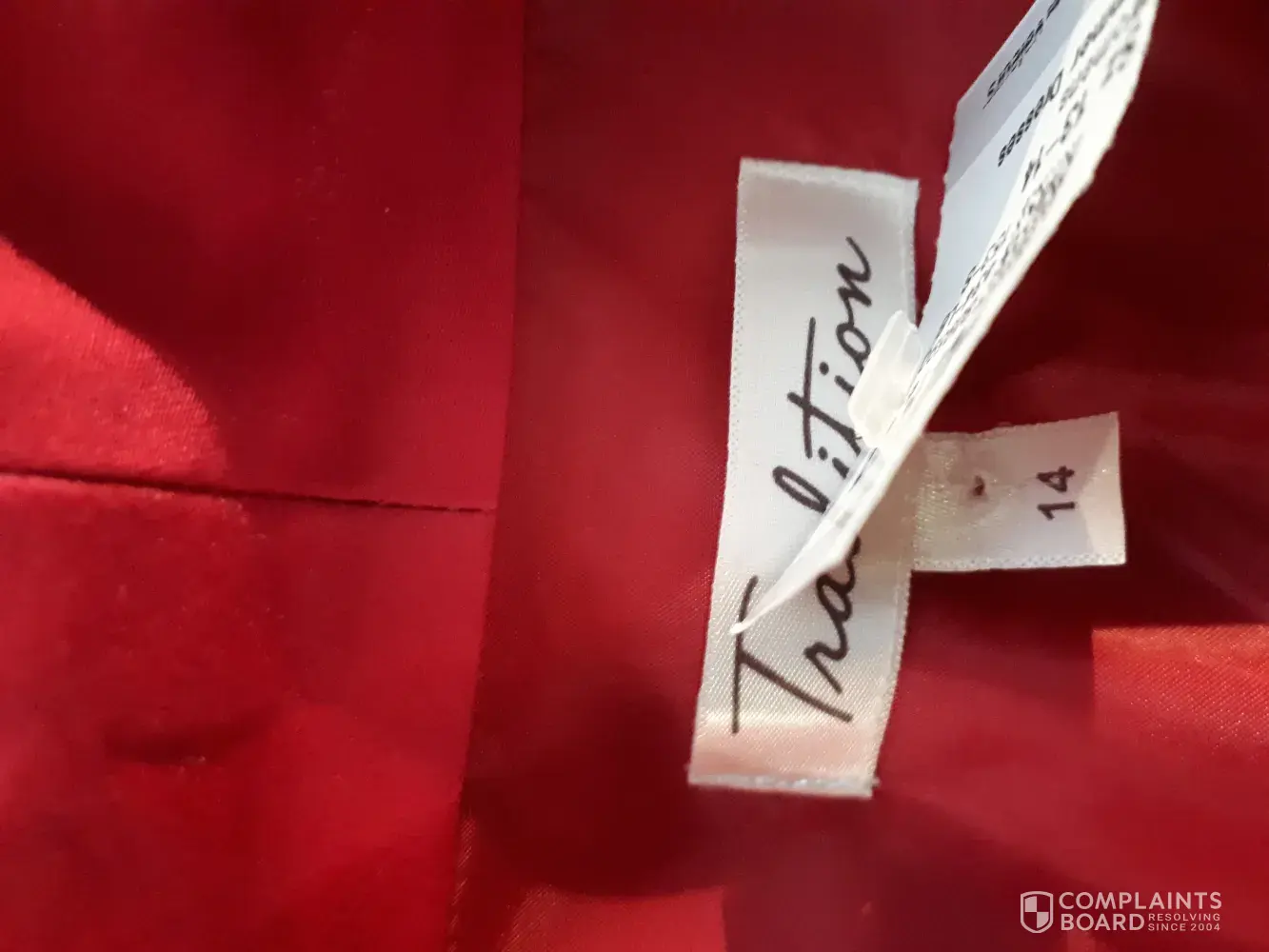 Denied exchange of the dress with the subject of tag had been removed from the dress.