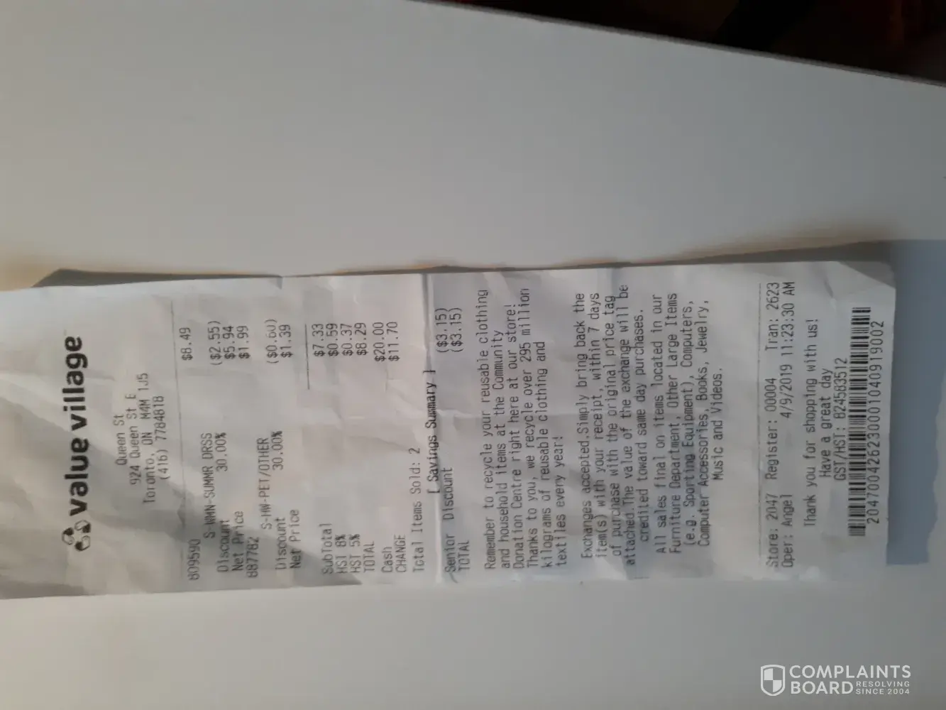 After seeing the other reviews it seems Value Village has a practice of being unfair and discriminatory to its employees and its customers.