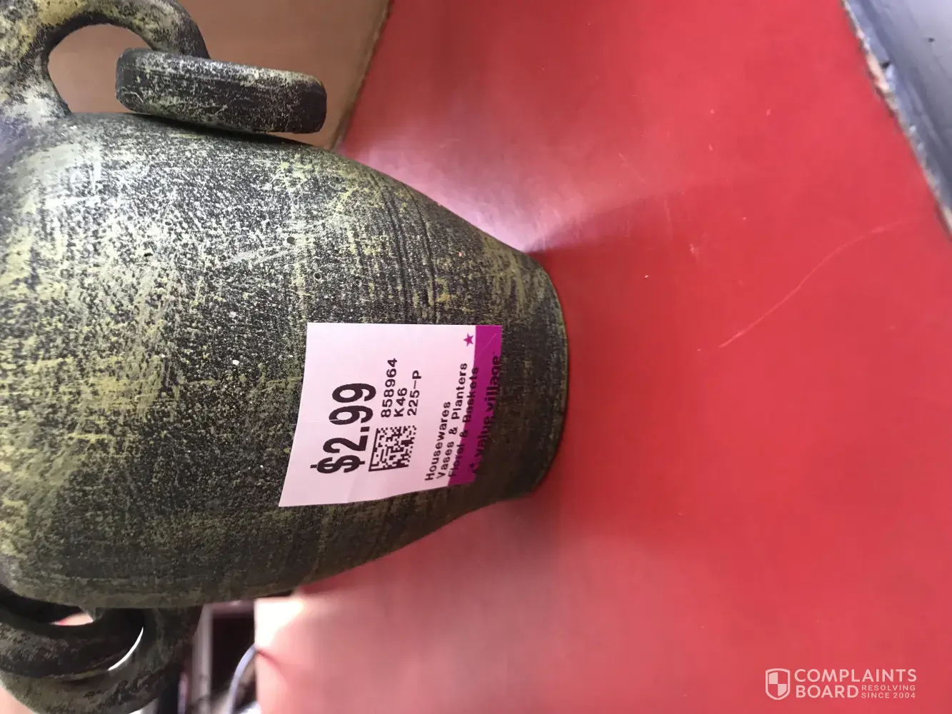 On Thursday, May 30, 2019 at approximately 10:50am I was checking out. I had filled my cart with all of the bigger mason jars a basket that didn't have a price and a 6 inch ceramic vase that was cracked I was planning on using for a house plant… When I got into the line I asked the gal for a price on the basket. Everything else had tags on it. The vase...